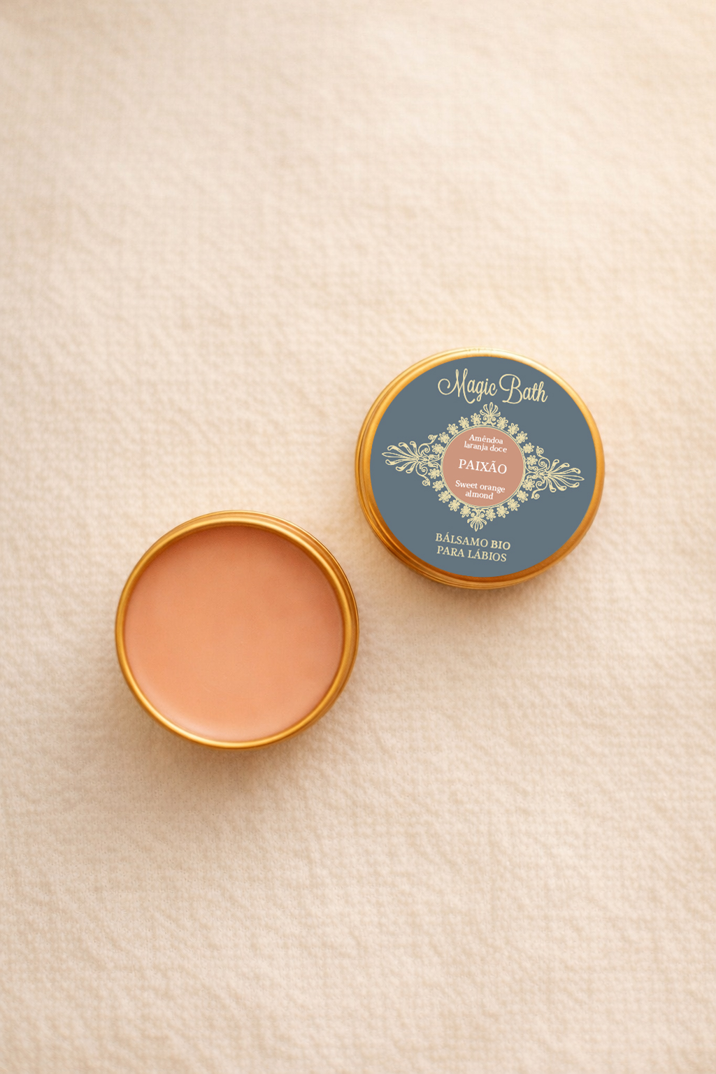 Um bálsamo 100% natural & vegan, nutritivo, reparador e protector. Especialmente formulado com Manteiga de Karité, Óleo de Amêndoas Doces, Cera de Candelilla e enriquecido com Óleo Essencial de Laranja Doce e Vitamina E, este delicioso bálsamo hidrata e protege os seus lábios das agressões externas (sol, frio, vento e poluição).