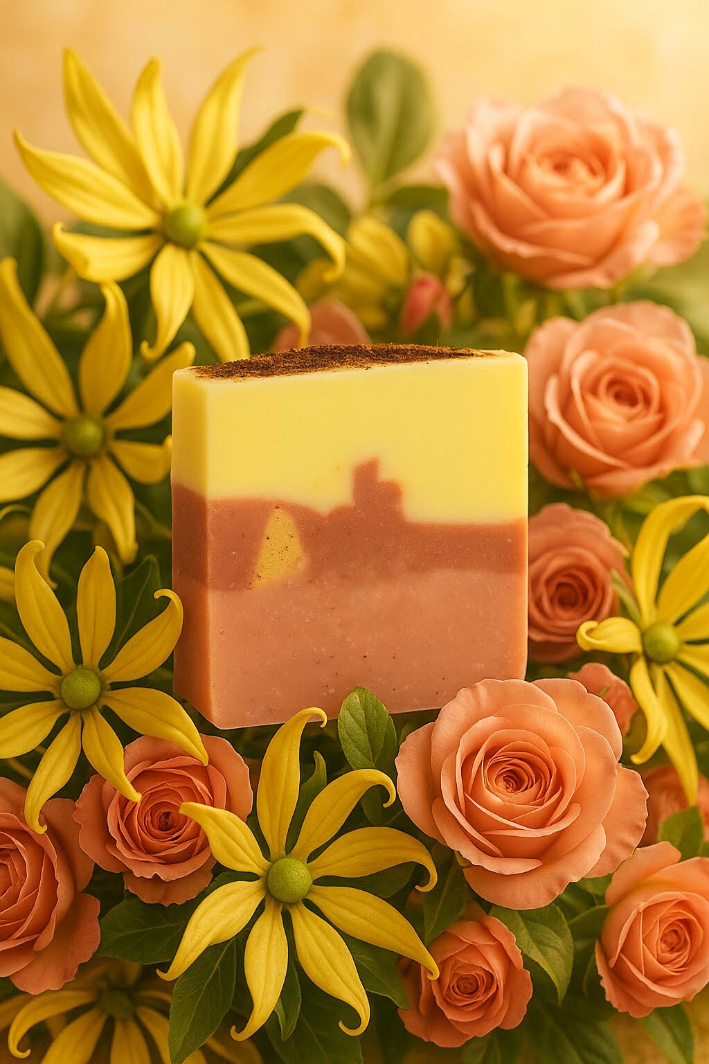 Suave e hidratante, o sabonete natural de ROSAS e YLANG-YLANG, ajuda a afastar a negatividade e o stress. Os seus poderosos óleos essenciais, promovem a energia, o amor-próprio e a cura.