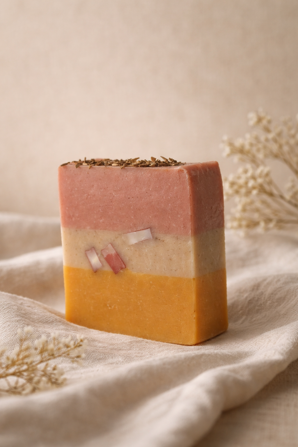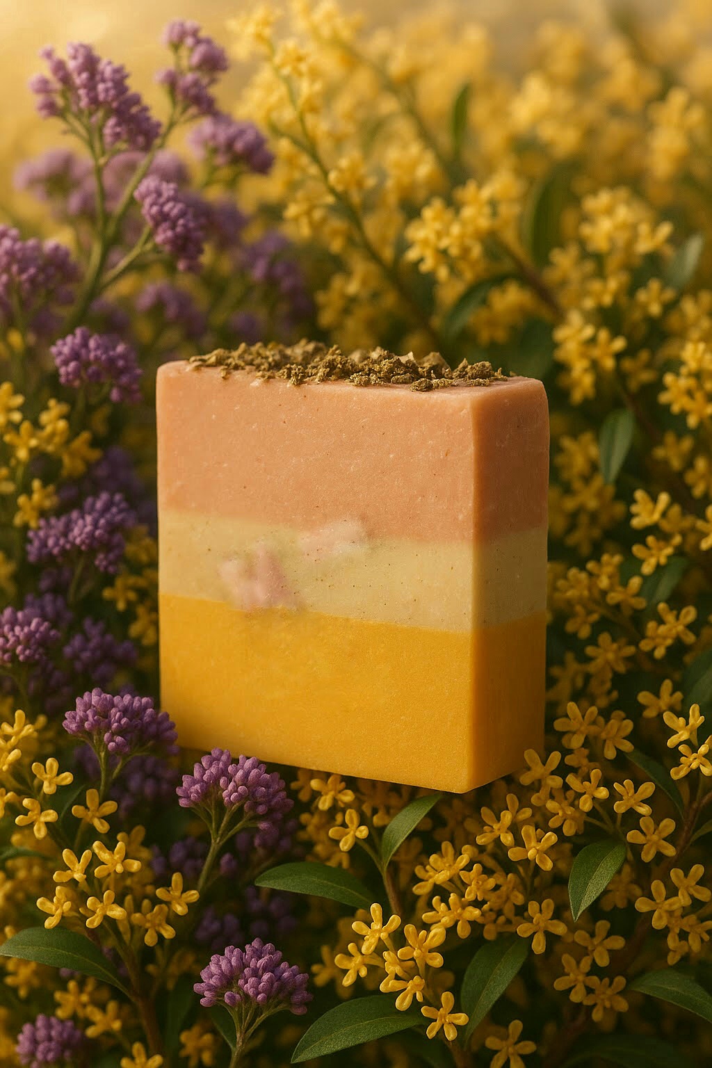 Suave e hidratante, o sabonete natural de Flor de Osmanto e Perpétua roxa tem efeitos calmantes sobre a ansiedade. A sensualidade da Flor de Osmanto, combinada com as propriedades regeneradoras da Perpétua Roxa, ajudam a combater a fadiga e a restabelecer a harmonia e o bem-estar.