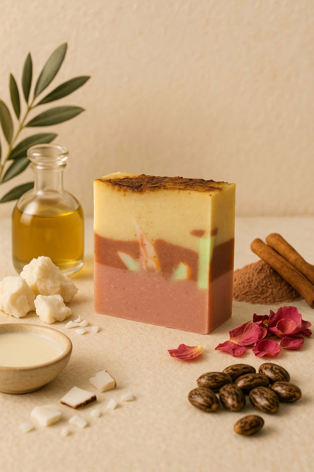 Ingredientes: Óleos saponificados de Azeite (Olea europaea), Óleo de Côco (Cocos nucifera oil), Manteiga de karité (Butyrospernum parkii), Óleo de rícino (Ricinus communis seed); Leite de soja, Argila ghassoul e argila rosa, Rosas, Óleo essencial de Ginseng. 100% vegetal. Peso: 100 gr.