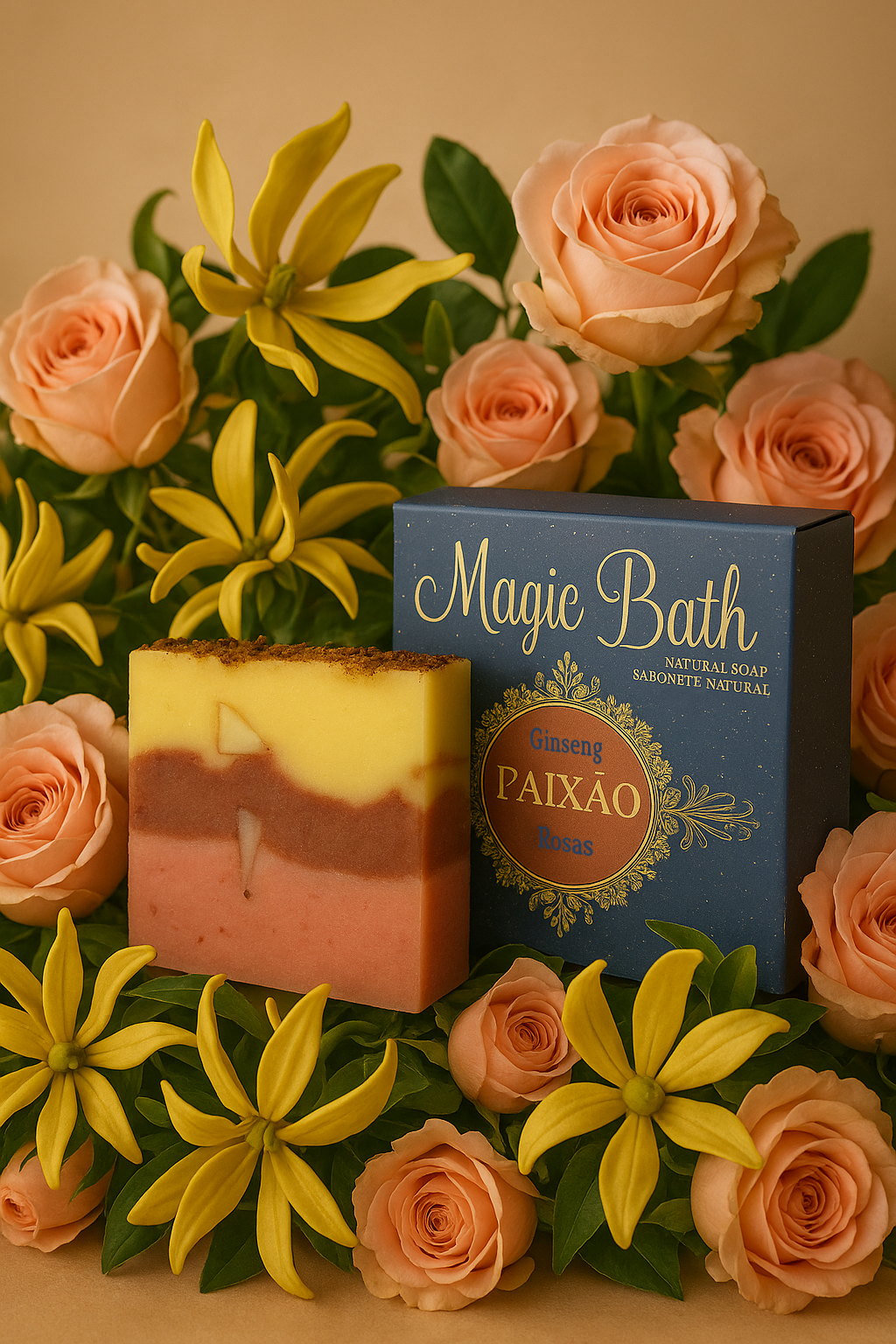 Os sabonetes Magic Bath são artesanais, feitos com ingredientes 100% naturais, hidratantes e de qualidade superior, sendo estes adequados a todo tipo de pele. Não contém óleo de palma, parabenos, fenoxietanol, ftalatos, óleos minerais ou ingredientes de origem animal.