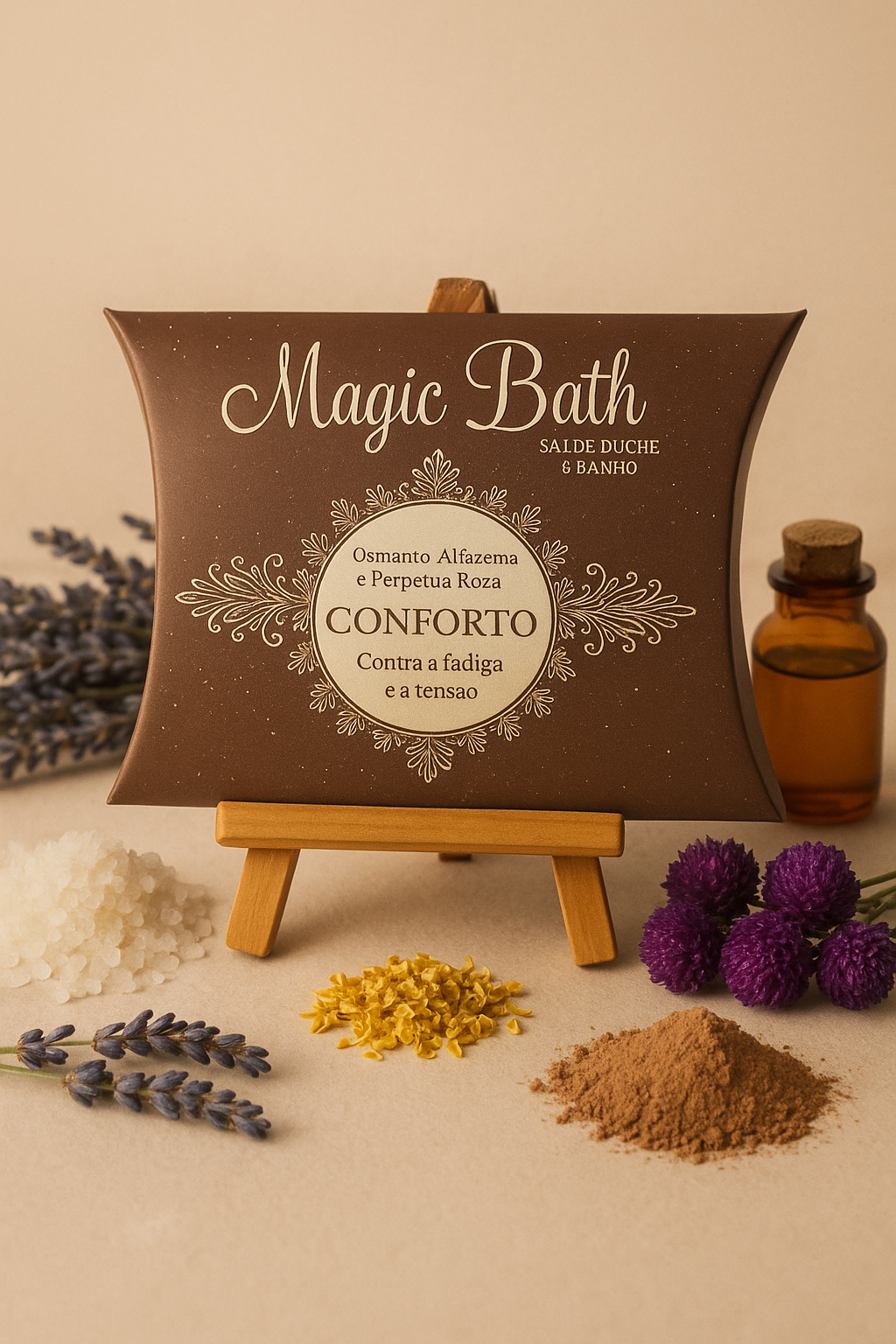 Os Sais MAGIC BATH® de Flor de Osmanto, Alfazema e P erpétua roxa têm efeitos calmantes sobre a ansiedade, promovendo a concentração mental e espiritual.